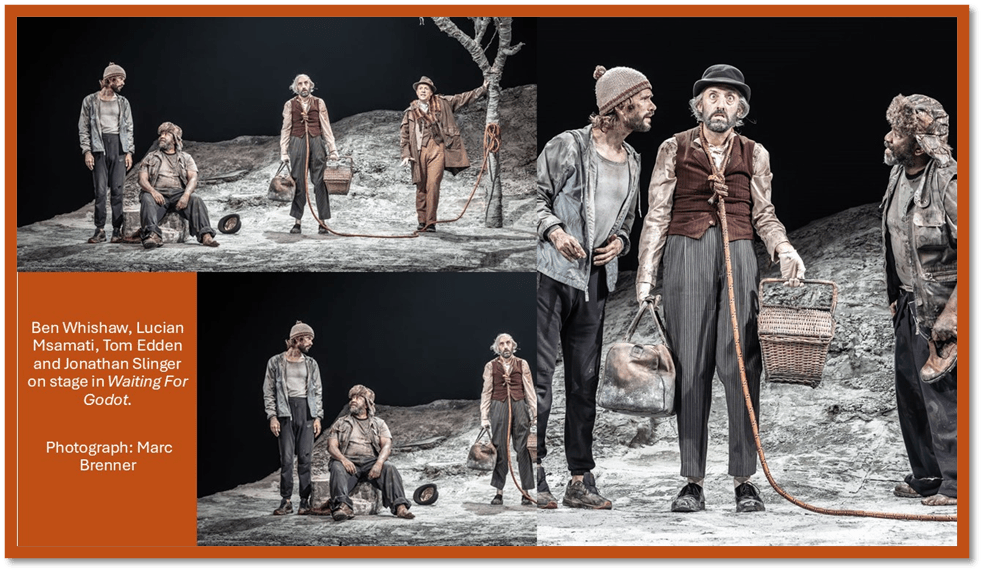 [5] Sarah Crompton (2024) ‘Beckett’s classic returns in a new production from James Macdonald’ In What’s On Stage (20 September 2024) Available at: https://www.whatsonstage.com/news/waiting-for-godot-with-lucian-msamati-and-ben-whishaw-west-end-review_1632794/