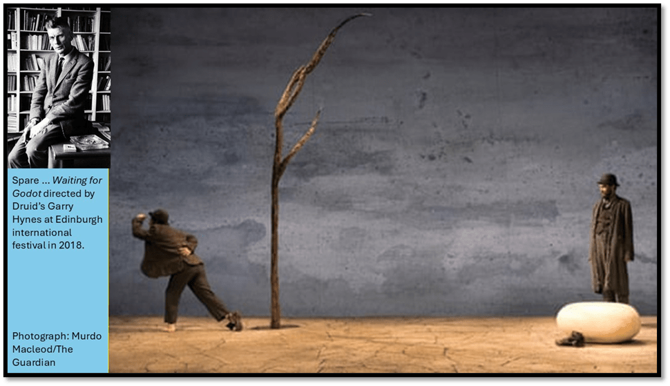 [4] Arifa Akbar (2024) ‘Waiting for Godot review – Beckett’s classic tragicomedy is more comedic than tragic’ in The Guardian (Fri 20 Sep 2024 00.00 BST) Available at: https://www.theguardian.com/stage/2024/sep/20/waiting-for-godot-review-becketts-absurd-desolate-existential-tragicomedy