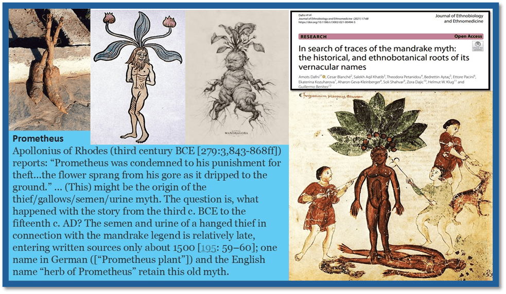 It is not only that that Estragon gets ‘highly excited’ at the prospect of an erection that matters here but that the ‘erection’ is a mutual incident that connects their bodies. The excitement is in the joint hanging and the joint hanging, even, as they are to find as they discuss the options they have to hang themselves in serial order of some kind, but who gets to go first, potentially leaving the other alone? Far from embarrassed, the men can be conceived and enacted as highly energised by this act of what they think, but for a moment to be a site of mutual satisfaction and even generation through Didi’s invocation of the mandragora / mandrake myths that some see deriving from the idea of Prometheus’s challenge to Zeus that he is a better friend to humankind. The two men become highly mythical biological fathers, even if a dangerous and monstrous thing compounded in error.