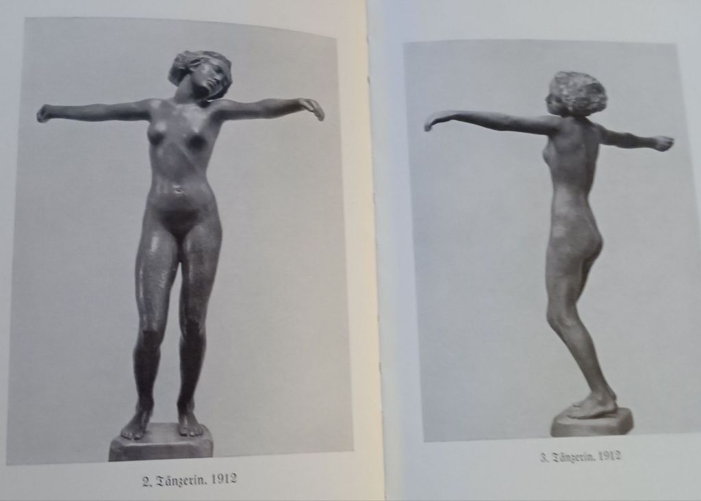 What struck me gazing through it was a change in Kolbe’s figurative sculptures between the 1920s and 1930s. Kolbe died in 1947. I looked Kolbe and the Berlin Secession up, for reasons that will become clear, in Wikipedia of course, and these reflection are based only on these superficial sources, just to help me think about what my first impressions of the book might mean. According to Wikipedia, Kolbe’s best piece, created in 1912, is a statue known as Die Tanzerin [The (female) Dancer‘] here below seen in a recent photograph from the Georg Kolbe Museum in Berlin.