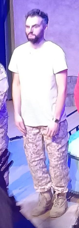 Cassio is never uncovered as the dangerous dolt that he is, except by Iago’s false ruse with him. However, behind him, in this production and the text I think, is little more than a raw boy, unable to take his drink but still doing so at the slightest provocation. A boy who is sexually profligate and cruel to the women he abuses by gaining their trust, like Bianca whilst intent on betraying it. He is most of the time no more than a buffoon in this production and brilliantly played as such by, I think (for most actors are not named) by one of Alexander Towson, Jamie Brown, Robin Kingsland, or Stewart Sylan-Campbell. Yet this is the ‘man’ that Venice leaves in Cyprus to represent its public face, riddled through with class prejudice and toxic masculinity, who abuses women by persuading them he might marry them with no intention towatds them than for raw sex, that will be enjoyed in the retelling of it more whilst he lies boasting in a common bed with his male military peers than in the event. That common male bed by the way is integral to the plot. It is where, Iago claims he overhears Cassio’s talking dreams about Desdemona and how he leaves her handkerchief for Cassio to find and for Othello to ‘see’ as evidence of his wife’s sexual freedom with other men.