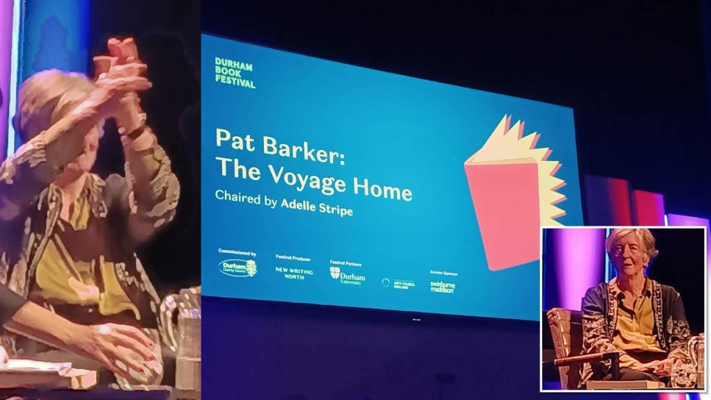 I have blogged on The Voyage Home in preparation for this event (see the blog at this link) and had it been for the fairly run-of-the mill interview with Barker conducted by Adelle Stripe provided by the Durham Book festival last night, I might have rested happy with my own reading. I did get the chance to ask a question and Barker’s answer showed me that I got one important factual context wrong. In my blog I had been fairly confident that the architecture and topography of the royal place and city of Mycenae were based on having surveyed them herself. I asked how much was researched of her descriptions of that place were researched and how much invented. In the blog I said this, rather cockily: