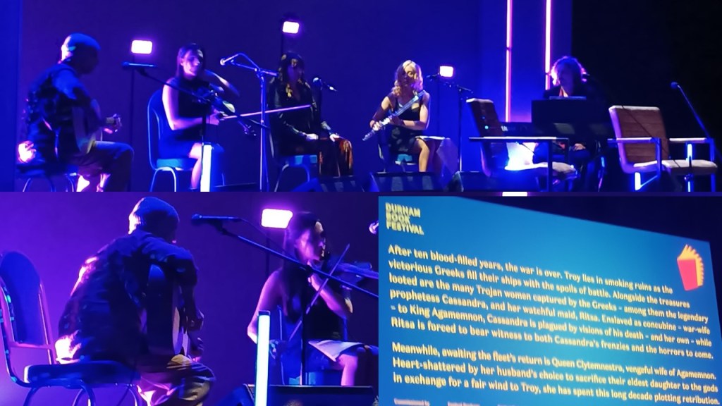 Hardwick, as Ritsa, sees us coming to the shore, before the actors exchange seats to mark a shift of place from Troy and ship to ‘home’, the coastal plains that serve Mycenae. In the shift, Zaida becomes Clytemnestra – brilliantly. The actors take the story up to the point of the meeting at the royal summer Palace on the coast next to the tomb of Iphigenia, their daughter, slayed by Agamemnon as a sacrifice to appease the Gods to look fair upon his military adventure to Troy and to turn the parlous condition in the military camp to those in which old king Nestor can have a comfortable shit. Clytemnestra’s view of all this is expertly handled in the prose and was brilliantly speaking to Agamemnon. The latter role was read by Hardwick with no attempt to stereotype his ultra-male discourse- and thus making it more deadly. Clytemnestra tells him that tomorrow will be a long day – with a beautifully timed additional ‘aside’ in Barker’s prose, marked as Clytemnestra just thinking the words: