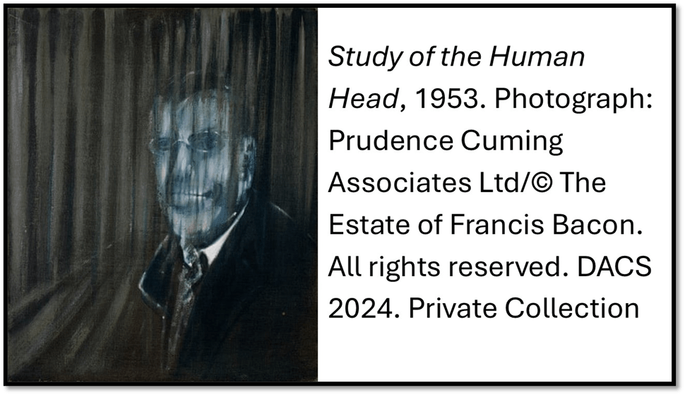 [7] Nancy Durrant (2024) ‘Francis Bacon at the NPG review: a gut punch of a show that’s oddly uplifting despite all the darkness’ In The Evening Standard (9 October 2024)available at: https://www.standard.co.uk/culture/exhibitions/francis-bacon-at-the-national-portrait-gallery-review-b1186664.html