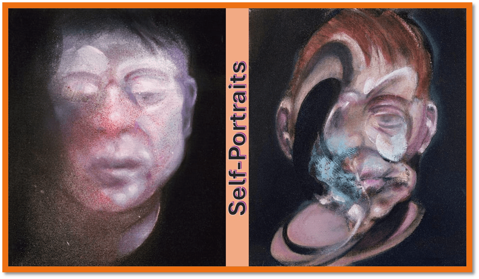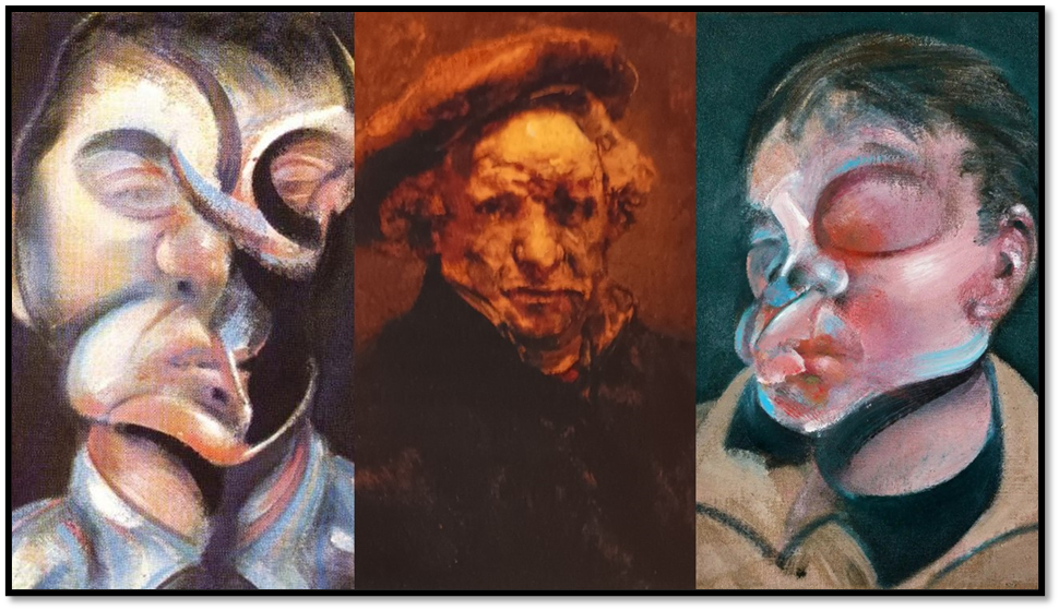 Let’s see it next to two Bacon self-portraits. The distortion in Bacon is different – of course it is.