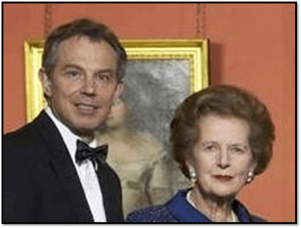 Blatcherism can be defined as an emphasis on free market policies, support for Privatization or the private ownership of former public services, a monetarist/neo-classical economic policy and a retention of anti-trade union legislation. … Under Blair’s leadership, the party abandoned many policies it had held for decades and embraced many of the measures enacted during Thatcher’s tenure as Prime Minister, including the Building Societies (deregulation) Act of 1986. In conjunction with Peter Mandelson, Gordon Brown and Alastair Campbell, Blair created the New Labour ethos by embracing many aspects of Thatcherite beliefs into Labour as the “Third Way“.