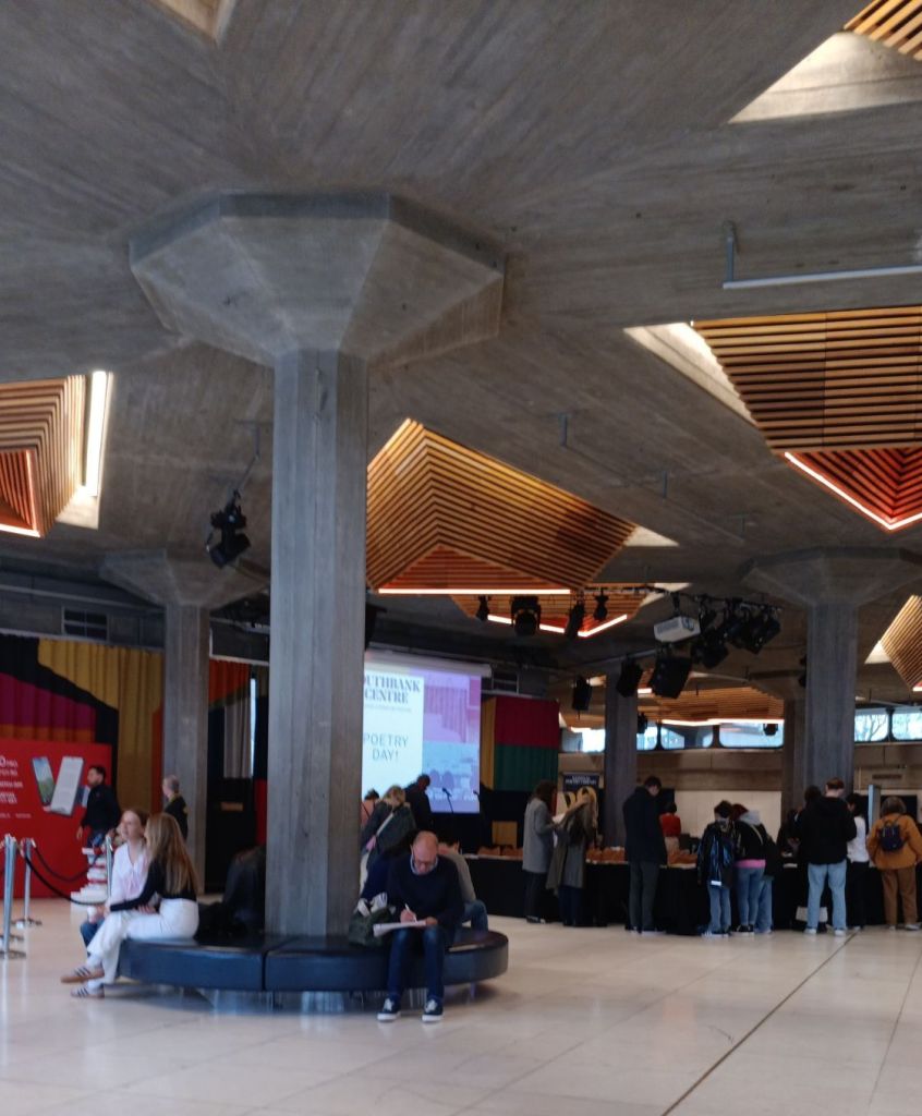 The Southbank venue is a kind of haven of anti-establishment culture parasitic on the mainstreams of European white culture. That goes for class too. I have never felt so working class and Northern in origin as sitting in the foyer of the building amid spectral columns within the building brutal architecture (se above) with mu bags and big coat and harassed lost look. Yes there are enclave archives of resistance, like a Palestinian music archive in the Queen Elizabeth Hall, but not a single member of the everyday staff at doors into the building or on the floor in that building knew it existed (it is on the left as you enter from the raised terrace facing the Thames, overlooking the Purcell Room.