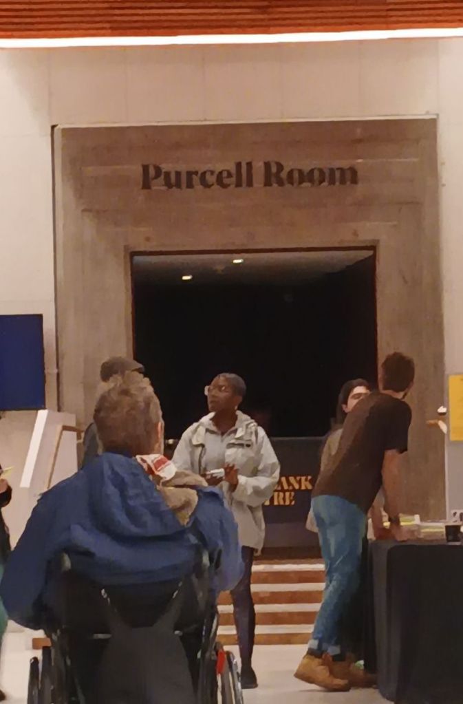 The Purcell Room too has a kind of institutional grandeur, at its portal and then within in its raked institutional elegance.