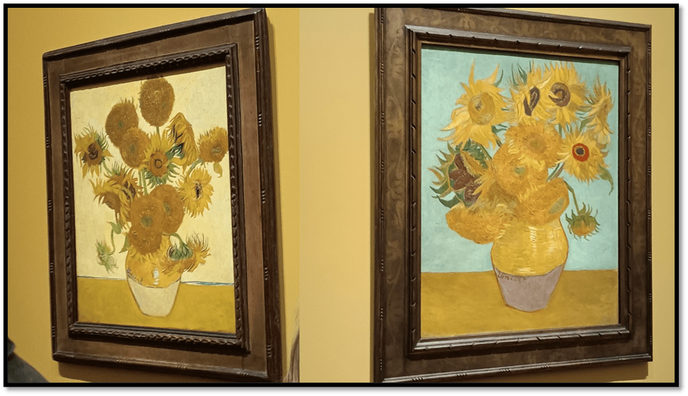 And then there are the backgrounds of the paired sunflower paintings. I forgot how haunting they are until seen in the flesh.