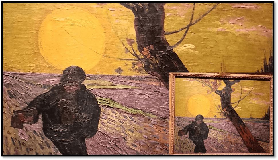 At other times iconic representation entirely takes over as in the representation of the sun in The Sower, which so evokes complex uses of that symbol in Zola’s novel set in this same region.