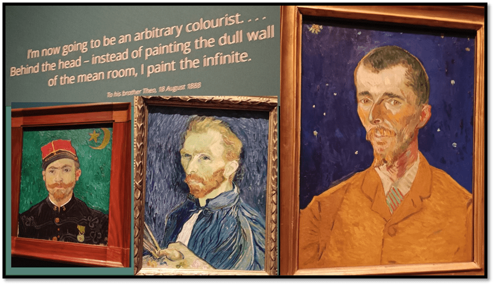 The organisation of the exhibition follows that of the essays in the catalogue but it economically introduces the exhibition through two pictures only: the first two of figures in which it is clear that Van Gogh looks beyond the person represented to some iconic role. There are several of these portraits throughout the rooms, but the introductory room makes use of two cognate ones that also encapsulate the title of this exhibition : first, the Lover, then the Poet.