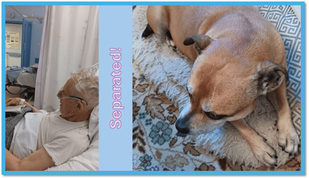 Meanwhile he lies in a hospital bed and his doggy hangs her head in sorrow (as does doggy’s other Daddy)!.