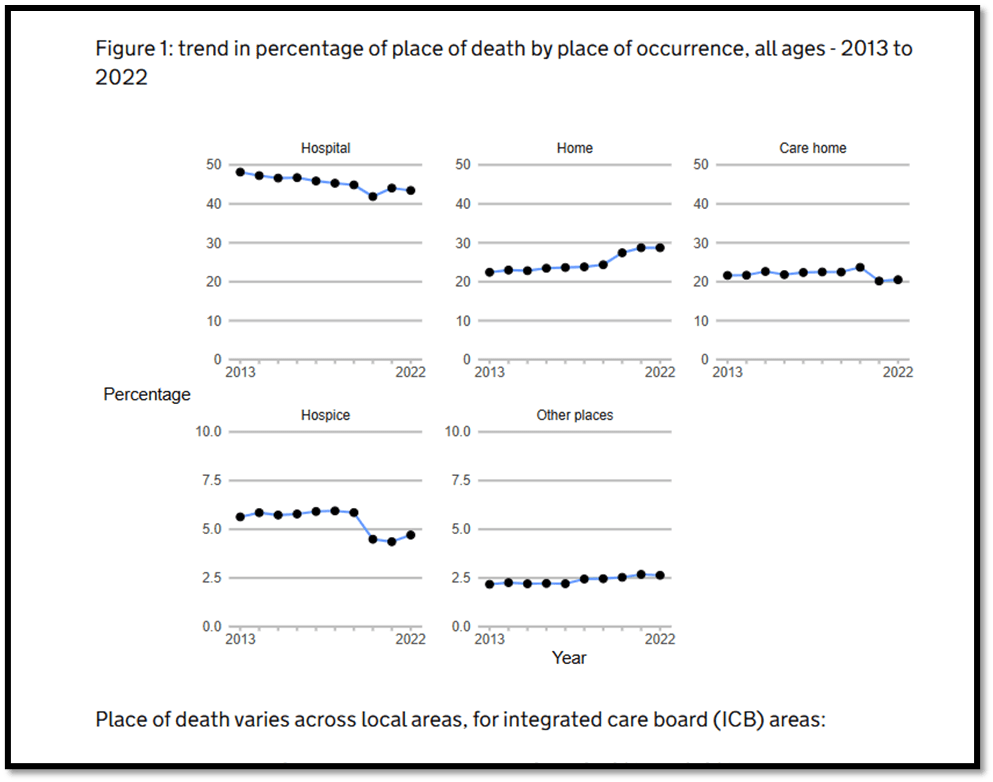 One particular issue is mentioned by the BBC. Wes Streeting, who is, after all, in a position to change the funding of hospices as a preferred place of death, says that the funding is unacceptable but will not change that funding whilst still using hospice ideology, which was once universally against assisted death when autonomously requested by a dying person (although not now), as an argument against assisted dying. But look at the Government figures below (the full report is at the link):