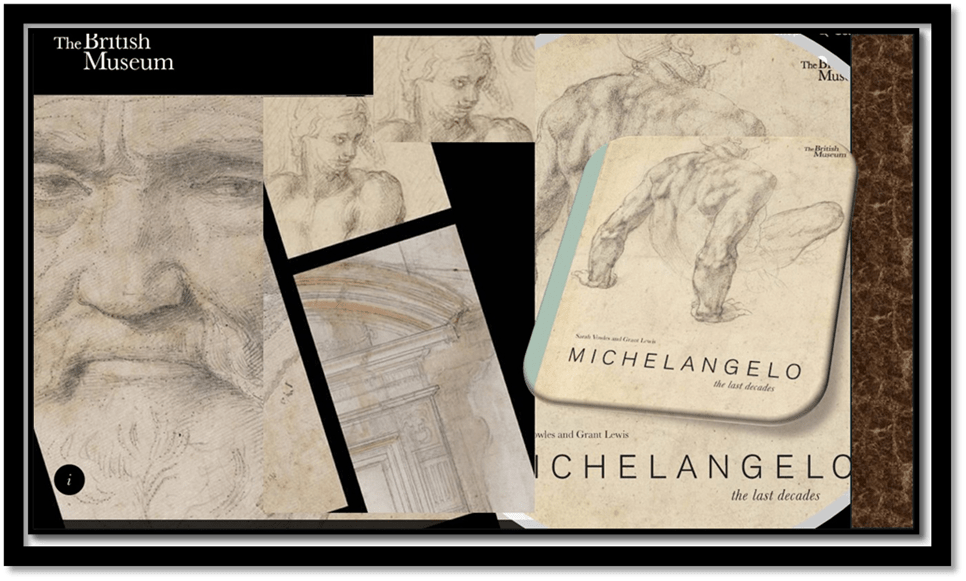 However, I won’t try to reproduce what Sam said or even give my present readings of this cartoon. Indeed, all I want to say is that this was ‘my favourite cartoon’. Now, I dislike the word ‘favourite’ as a means of assessment, especially of an Old Master cartoon. This one, like others, was meant to prefigure later paintings, except sometimes in Leonardo, those paintings were never made. In the case of Michelangelo, the cartoons by him were studies [disegno] for paintings by other painters than he, and overshadow the paintings done by those others from them. Those latter cartoons featured heavily in the last British Museum retrospective of Michelangelo drawings (see my blog at this link).
