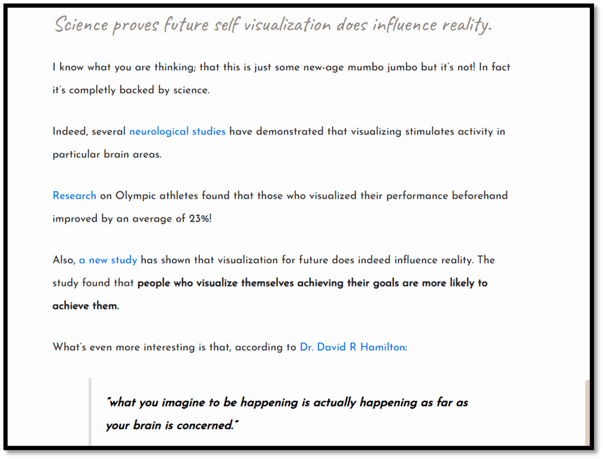 Then by using the goals of the ‘current self’ you then visually imagine the person it might produce in the future. The site describes this well in easy terms: