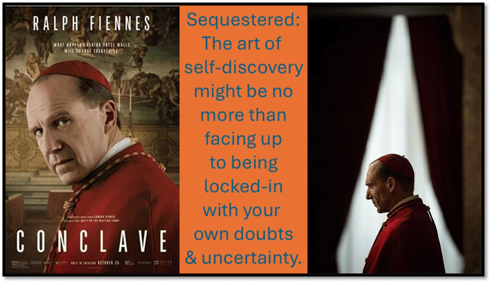 Sequestered: The art of self-discovery might be no more than facing up to being locked-in with your own doubts & uncertainty . A reflection after seeing Edward Berger’s film Conclave. [The film is directed by Edward Berger and written by Peter Straughan, based on the 2016 novel by Robert Harris].