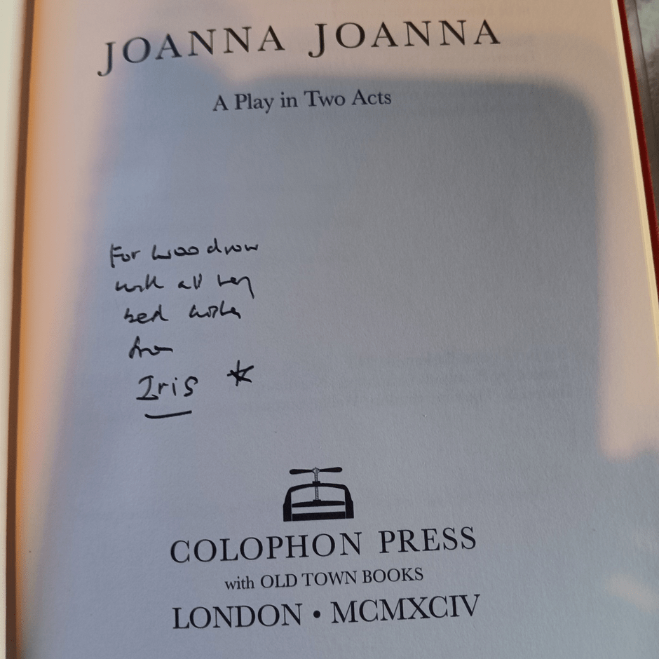 Last week I became aware of an app intended to allow a comprehensive listing of one’s own library and shortly afterwards I began to use it. It is going to take an age, for even though International Standard Book Numbers (ISBN) and especially digitally coded ones allow for easy searching, much of my collection has neither of these. Moreover I found that, as I approached my core collection of beloved authors, I occasionally find works that I have never read but always intended so to do. One such was a play named Joanna Joanna published by Colophon Press in 1994 with a limited run of 137 copies. My copy is number 11 of this edition and bears the bookplate of Woodrow Wyatt, once a left leaning Labour MP who later was hounded out of the party by Hugh Gaitskell for supporting individual ballots in secret in union elections and campaigning against union block votes) and who later became a fan of Margaret Thatcher for her attempt to control trade union ‘power’ as he saw it.