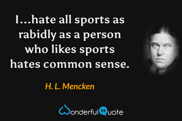 Mencken was not a nice guy. He hated representative democracy and anything he thought resonant of groupthink . His thinking, feeling and action was geared to the support of elites quite openly. Effective elites were not, he believed as an article of common-sense, fostered by sports. And, in truth, had I been a good thinker myself at that time, I would have seen that a competitive society had better ways of reproducing itself than sport; ways in which I now realise I was complicit. Injustice and inequality can not survive through the boorish methods of sportsmen and sportswomen alone.