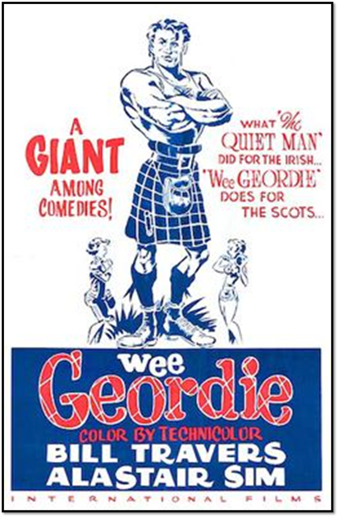 That ‘sport’ was in fact an exercise of the entitled in extending their power, as it is in another way globally for the terrible regime in Dubai in our days, is clear in King Lear but also in my memories of sport when I was a boy. Sport was used as a means of identifying the weak and those refusing to meet the norms of, for instance, masculinity. Having been identified, the processes of involvement in sport reinforced the reasons for identification. This was a topic admitted in culture but only in cultural work, often based on ‘true stories’, mythicised as ‘true stories’ always are, that spoke of the underling defying their status and becoming what they were not – a world-beating competitive sportsperson in their own right. Take the British film comedy Geordie of 1955, (only in the USA was it ‘Wee Geordie’): a film I remember well and with trepidation in relation to participation in sport.