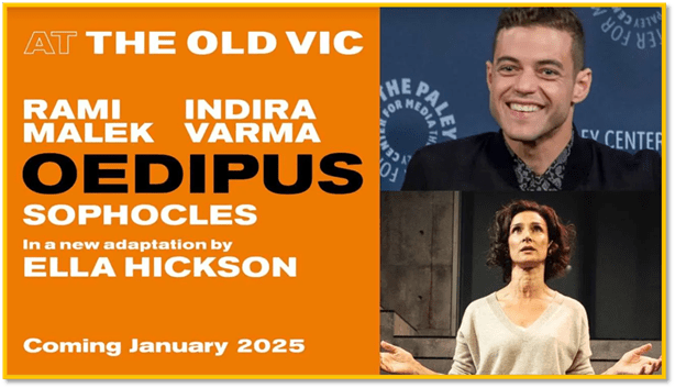 What I expect from these productions is a reconnection to the web of veins that carry the lifeblood of culture – one that is not the matter of entertainment but fear, awe and complexity of decision-making in action; something to battle the agony of mindlessness that a world dominated by politicians with no culture like Donald Trump and Keir Starmer really make me yearn the more for. And that complexity involves ones that cut generic boundaries and both the Sophocles productions will do that in ways I am not sure Icke would have intended with his ‘modernising of classics’ approach.