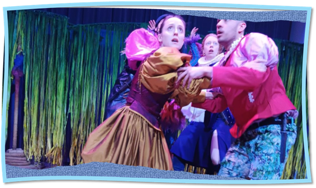 Some characters are bonded to one role – others go free. Sex / gender boundaries are crossed freely – Alonso may become a mother to Ferdinand – making a mess of the alliteration in ‘Full fathom five thy father lies’ when it becomes ‘Full fathom five thy mother lies’ but is oft allowed to remain referred to as ‘he’ and ‘Sir’ : likewise other cross-gendering characters like Antonio – Prospero’s brother become a treacherous sister. Carla Garret plays Ariel as non-binary as must Ariel be. From hopeless slave to loyal courtier Shakeel Haakim rang all the changes of what ‘service’ means to great ones and authorities. Prospero himself is played as a man who binds people, souls (and daughters) too tight until he learns that he must step down and renounce even the power of his voice in verse.