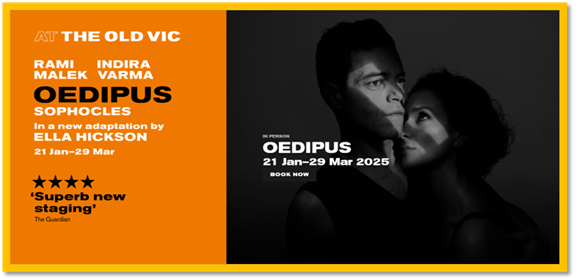 [1] Andrzej Lukowski (2025) ‘Rami Malek and Indira Varma star in a bizarre dance-theatre remake of the Ancient Greek classic that tinkers the tragedy out of the drama’  Old Vic, Waterloo Until 29 Mar 2025 in Time Out (Wednesday 5 February 2025)