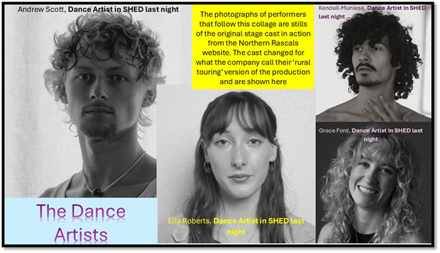 Hence, seeing Northern Rascals is a jolt. Northern Rascals #, by the way, is a nationally recognised performance company and is led by Anna Holmes, who always writes their playscripts, and Sam Ford. The company provide a simplified version of the stories in their production of Shed on their website, just as a conventional ballet might, but it suggests more than openly shares with prospective theatregoers and is not, in my view, the kind of necessary aid required by classical ballet-goers. Here is their version of the story; in case you don’t want to turn to the website itself):