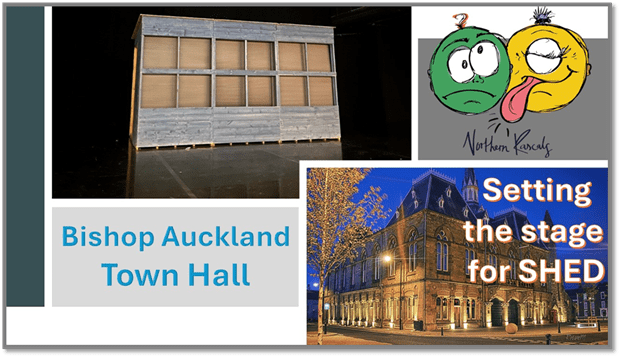 My head is in a shed after seeing Northern Rascals play out their wondrous multi-genre and multidisciplinary art form in their current touring production that ended in Bishop Auckland Town Hall last night (Wednesday 19th March 2025). But what a wonderful gift to every sense and to the co-interpretation it invited between audience and the Northern Rascals crew was this unassumingly staged SHED (until it began playing).