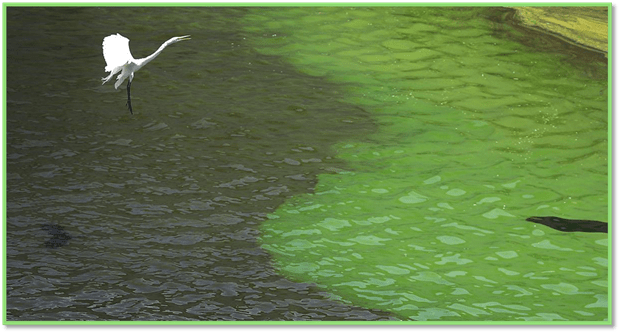 A flock of white birds, maybe egrets, were standing on its banks, almost motionless, among the pieces of plastic bags and tin cans caught in the caked-over mud.[4]