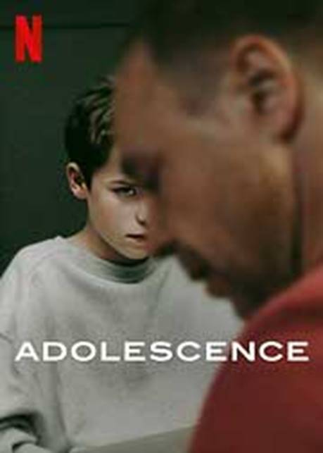 I have recently watched the 4-part TV series Adolescence streamed on Netflix.I thought it a frightening picture of both the malaise that currently characterise a drifting society, continually looking for one-issue redeemers (be it a political party or regeneration of leadership thought of as the birthright of strong fatherhood principles). Adolescence is not I think a symptom of that moral panic, though its best episode (Episode 2) shows a father (Ashley Walters as DI Luke Bascombe, the police Detective Inspector responsible for the arrest of the 13 year-old Jamie Miller (played brilliantly by Owen Cooper) at the series’ centre trying to redress the failures of modern schooling, and possibly the modern family as he sees it, by taking time out at work to bond with his own son . T