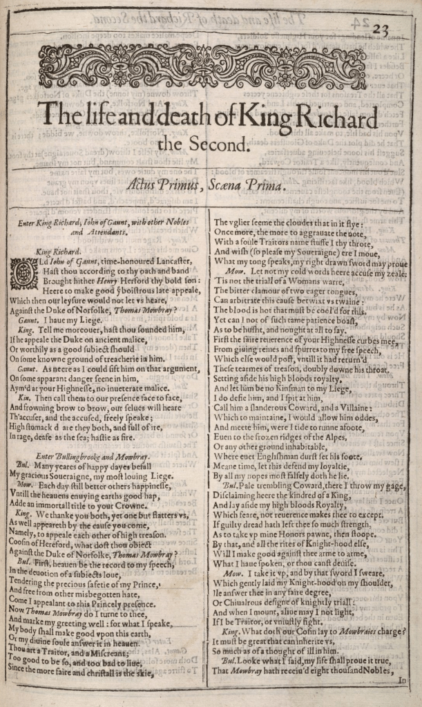 In these lines the ‘real man’ in Richard II (not of course Richard II) is introduced as the model of a loyal Lord, loyal to God and ‘his sovereign’, who ought to be Richard II. Yet it will not be long before we realise that this same ‘Harry’ will become to stand out first as Henry Bolingbroke, with a claim (as he sees it) to Richard’s throne and role. He will also end the play as the usurper King Henry IV, prepared to take on Shakespeare plays under his own name, even if they are really about his equally Machiavellian son. The man – so much more a man (the play insists) than Richard II – deserves to be king and find himself as thus – authoritative male and father figure as he will represent himself.