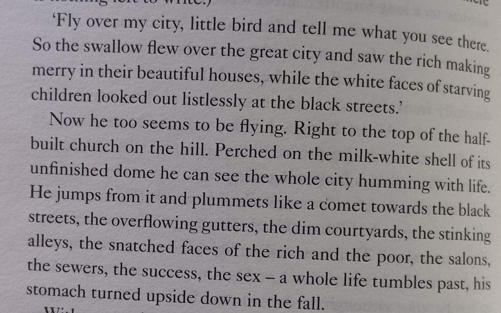 Wilde’s prose that advertises its socialist response to economic degradation and inequality is exposed in the flight of Wilde imaginatively as he reads to his boys , but soon falls like Icarus – or Lucifer or Man in the story of the Christian FALL into places where dirt and poverty become, or have become synonymous with sex for Wilde, seeking it where payment eradicated distaste or ethics, even when the sex begins to seem exploitative on behalf of those able to afford to fly.