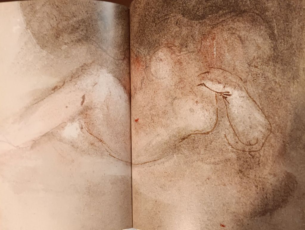 Even when body is delineated, Desire invades it as a drawn item of laid-over fabric in rich tomes of red and its spectrum, then mirrored in a blush which crosses the boundaries of the neck. This is truly erotic and again cannot be easily interpreted as a product merely of the male gaze. If it were Turner would have never relished so much as he clearly did the sharing of the same space of the spotted dark markings – perhaps intending to represent pubic hair partially as well as shadow but perhaps not – and the blushful Hippocrene of the red shading.