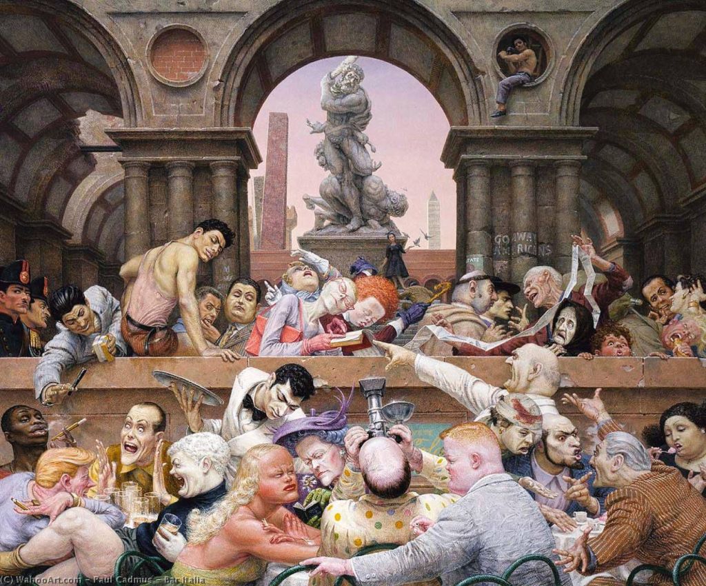 I hope I make the point here that ‘subject-matter’ is inexhaustible to the eye if you allow it to be and do not reduce it to abstract interacting surface forms. This is the point of another painting by Cadmus that Kirstein does discuss, though only to say that it shows Italy as Henry James both loved and hated it, a point we don’t quite get unless we are sensitive to the knowledge certainly held by the PaJaMa Group [more of that later] that James used Italy to explore his closet sexuality; in both Roderick Hudson [see my blog at this link] and The Portrait of a Lady.
