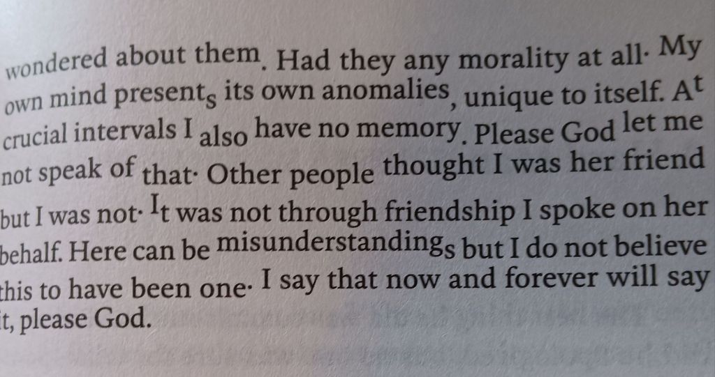 I know these stories all matter, for as soon as I choose a ‘favourite’ another pokes me in the ribs and surreptitiously takes its place in the hierarchy, questioning whether it ought to be a hierarchy at all. As with most people who love Kelman, we are on watch and ward most when he treats of sex/gender differences, especially in these heated times for that topic. One story that I need to come to terms with is literally wonderful and called A Woman I can Speak About [James Kelman (2025: 7141) A Woman I can Speak About in ibid. 140 – 141]. I can’t just quote it because it uses all the wisdom about font and space production that lies in Kelman’s own experience as a teenager, spoken about in his Introduction to this book, when he became a compositor’s apprentice in a printing company – also an aspect of the ‘work’ of art. So I will leave you with just this quotation photographed and no comment: