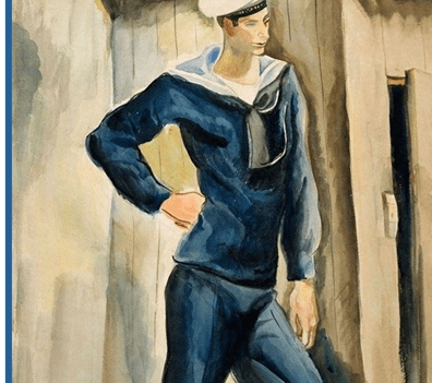 The trouble with Shaikewitz’s reading is that, though it can not be denied as a potential narrative version of what we see, it is also not the only narrative reading possible. There is no doubt that the mariner makes himself available for sexual pick up, but there is no means by which we can know his motive, which could, for instance, be that of prostitution, in which he adopts his pose as a means of advertising. But the reason for that weakness is that it is not essentially about queer art but queer behaviours that might or might not be being revealed.
