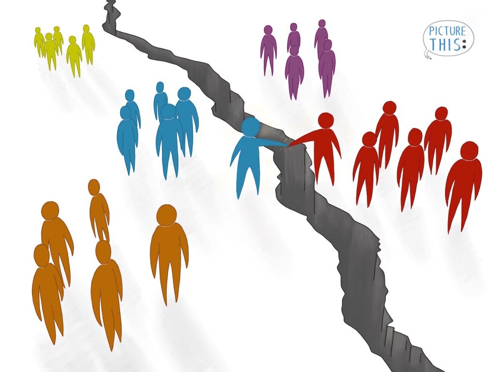 There is a notion about – as in the infographic below that dividision is always negative and connection is always positive., But the ideology of connection if allowed to be forever dominant has the logic of killing off thosde who cannot connect for reasons that go unexplored.