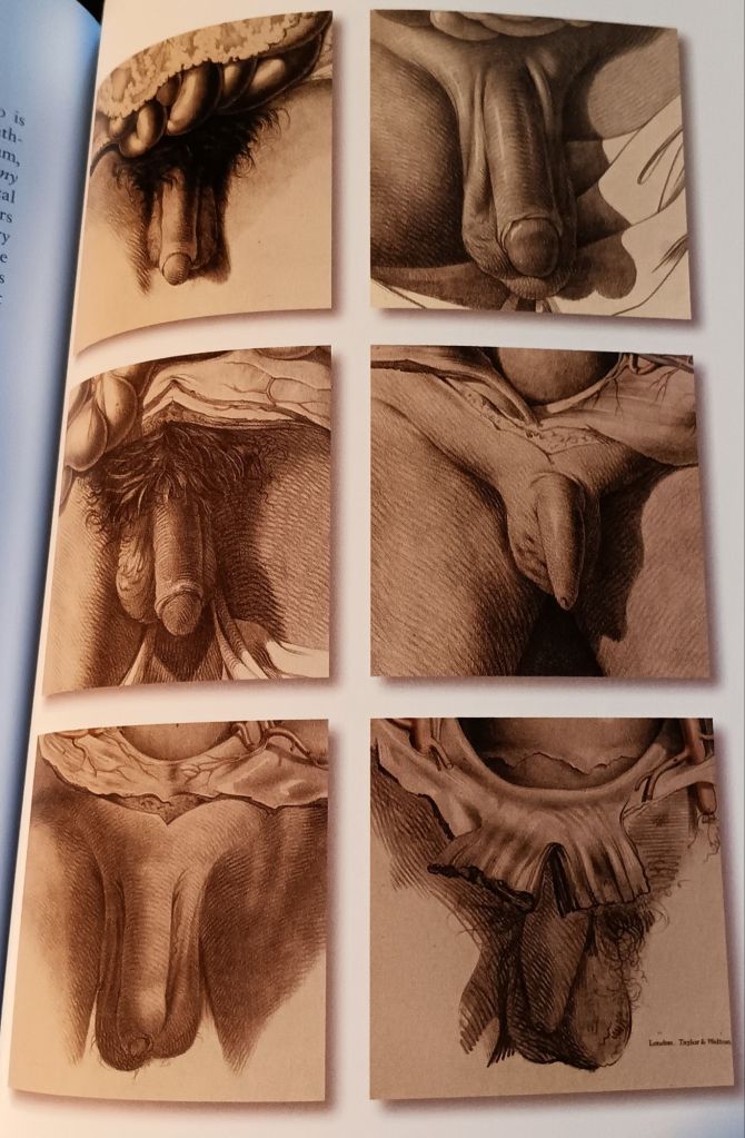Sappol has a whole section on ‘redundant penises’, which he also playfully calls a set of ‘dick pics’, to show both the inappropriateness of this nomenclature and, at a deeper level, the fact that it could be exactly a function of these details from anatomical drawings which in every case did not belong to descriptions of genital anatomy and were irrelevant to it. The pictures amaze because of their variety and lack of obvious stylization or typology. They range in size (length, volume. and density), state of foreskin development or presence, effect of relative engorgement, and the state of the pubic hair – shaved totally or partially or with thoroughness, appearance of volume and relative thickness of hair or, and this is creepy, shading by the overhang of redundant skin from surgery .
