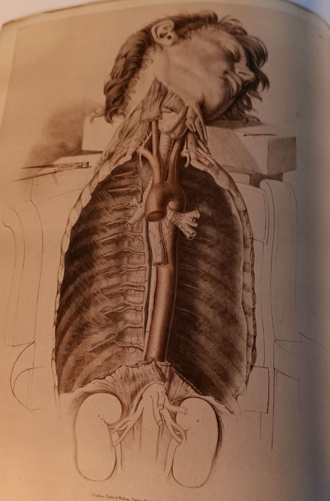 But not so Henry Maclise. For that head and face on his drawing above are unnecessary to the educational purpose of manifesting the main arteries of the neck and upper thorax. So, of course, are the lower abdominal viscera, but these are drawn, in recognition of that perhaps, in fading lines and without any attempt at depicting volume and mass specifically. In contrast, the lips, cheeks, and even hair of the young man invite our touch on their living solidity but also restrain it lest we wake or offend him.