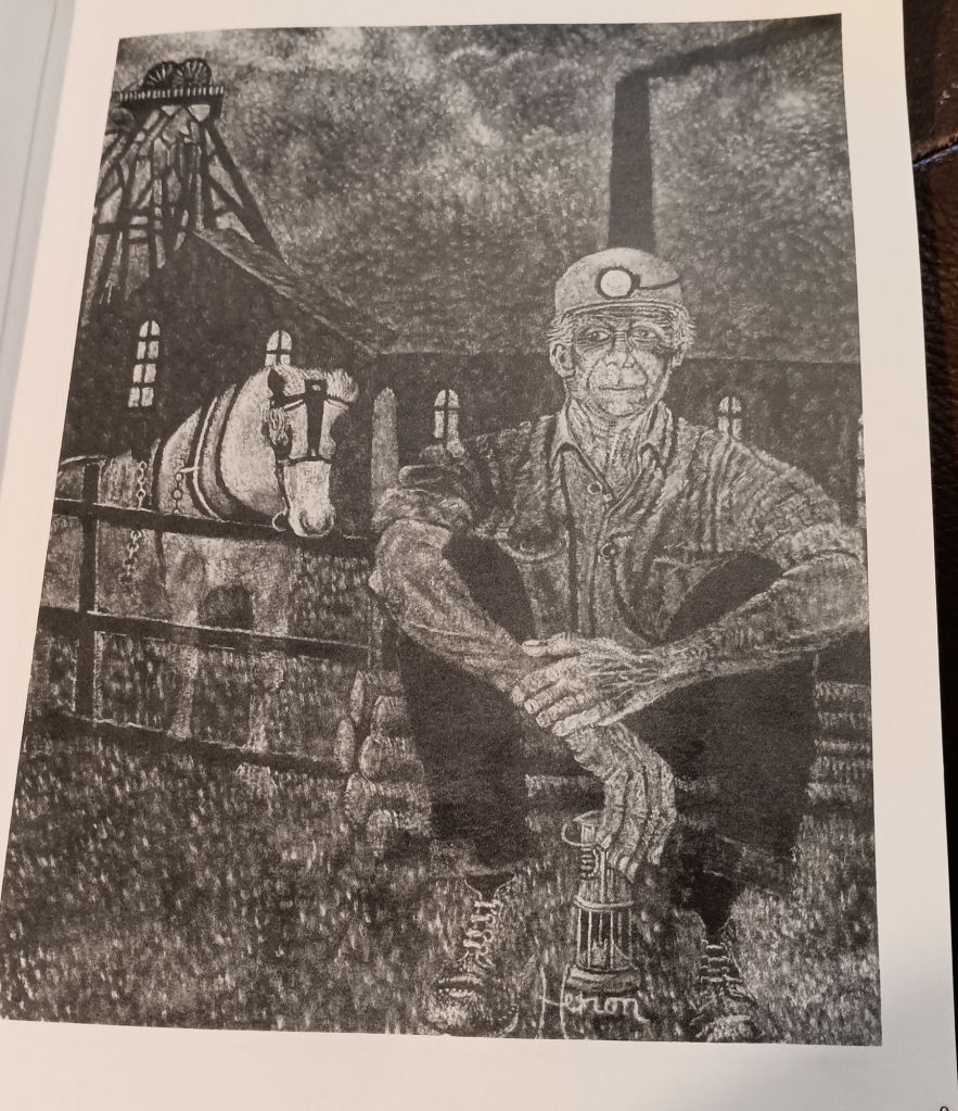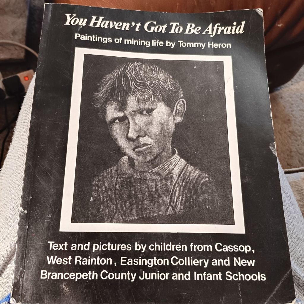 Geoff brought me a gift from his day volunteering at Oxfam to include in my mining books. It is a pamphlet published in 1990 by Durham Arts Association. It charts encounters by a retired miner, of 40 years work down pits, who was dedicating the time released to his lifelong wanting to produce art with several junior and infant schools across County Durham. Lotte Shankland, who writes tbe pamphlet’s introduction, first met Tommy in 1986, and she began a project working with the children, for all of whom the pits were then a fact of their older families’ lives but to them, as one boy said about the stories concerning those lives they were “just like a fairy-tale”. All of these children came from communities in which all the pits were closed; the last to close [in 1983], but for Easington which limped on, being near Cassop after the Miners’ Strike.