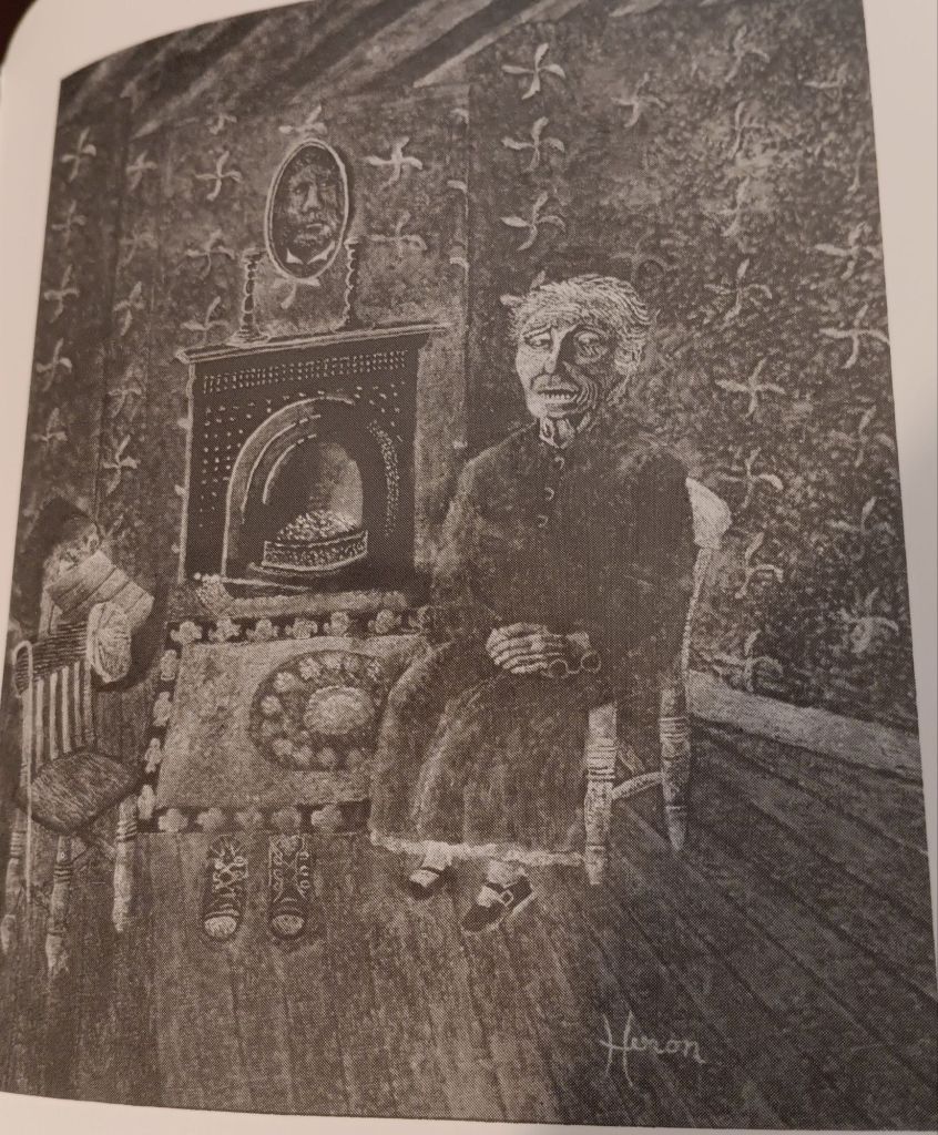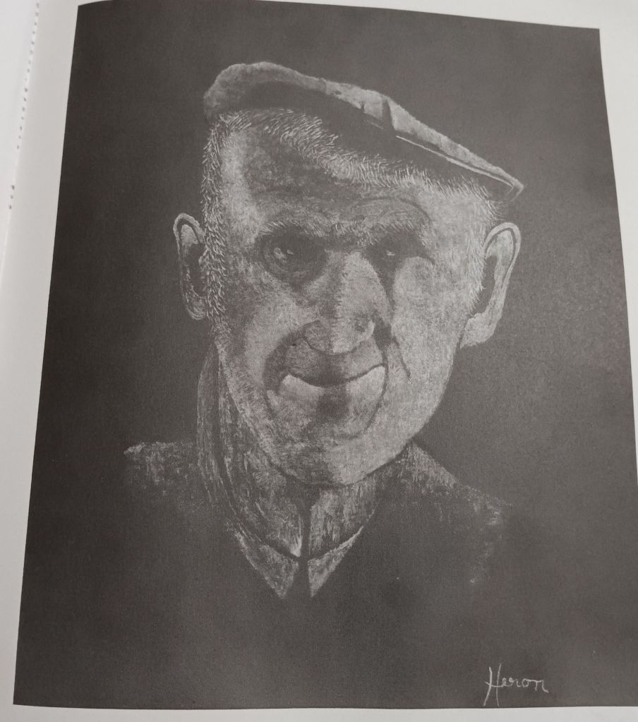 Yet Tommy Heron supplies a picture too of the tragedy of bereavement and widowhood: a woman with panic in her eyes sits stock still, afraid of both motion and emotion: her husband’s chair empty, his boots just stood before the table and his picture over the hearth.