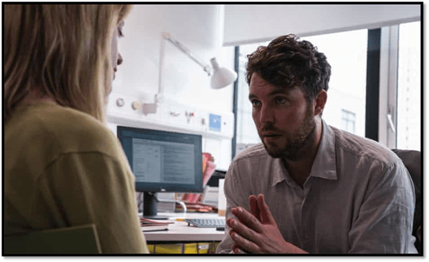 Ford and his clinical supervisor and manager, Dr Kate McAllister (Zoë Telford), seen at a point before the audience know, through the activity of a ‘BPD patient that they are in a relationship that is in itself a malpractice.