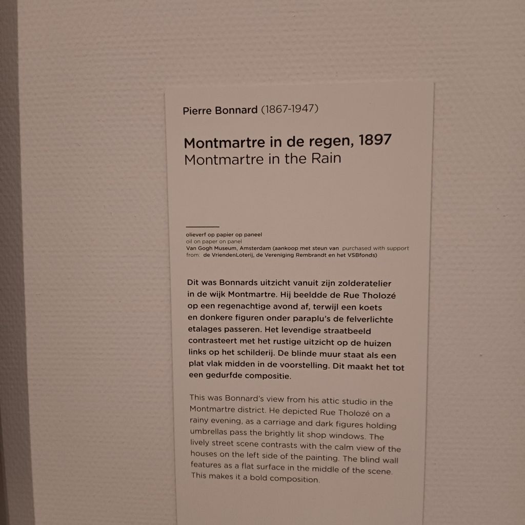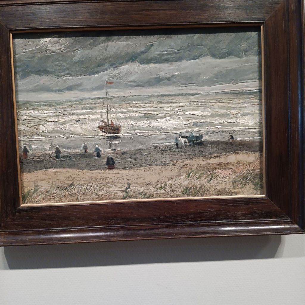 There is a connection, of course, between the two Parts, since both are a kind of commentary on the exploitation of the young and hopeful by an aging status quo: both features flowers that pass (especially sunflowers) and lives that have passed, are passing and will be born to pass too. The structure of the exhibition ought not to have a break between parts, but we felt we had an issue here. Before going to Part 2, which would involve leaving the VGM to enter the SM across the concourse, and we wanted, perhaps needed to see the permanent collection (or that part of it showing now) before doing so. This blog is about the swift attempt to at least acquaint ourselves with VGM, and I was determined it must be not as minor a glimpse as with the Rijksmuseum the day previously. The main collection is housed across the lower ground floor of the glass atrium of VGM from the circular annex, in the older section of the museum and the art is organised roughly chronologically in ascending floors from that base. Although chronological, it is a chronology that pays service in fact to Van Gogh’s artistic development and the contexts and significance of that development.
