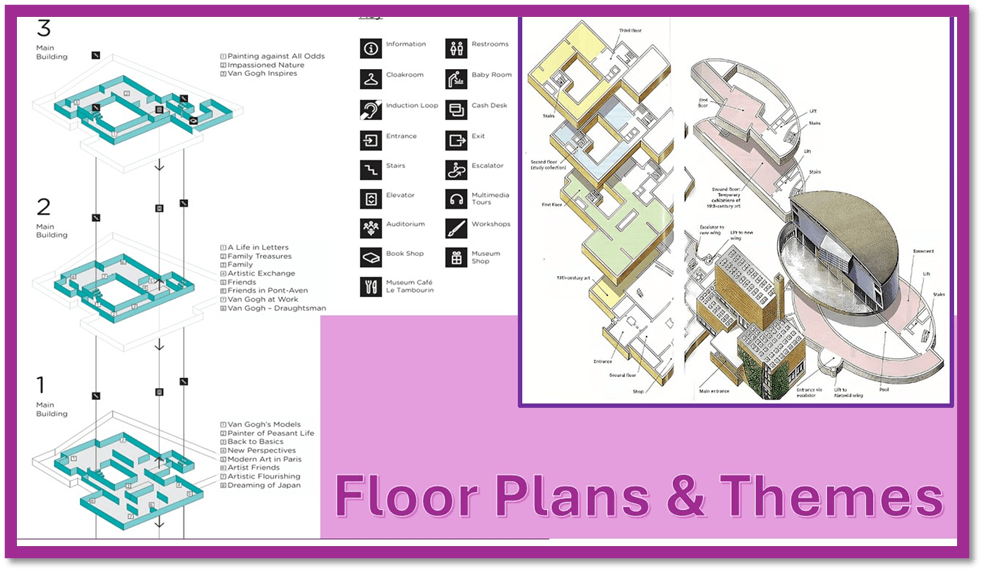 But let’s think again about the VGM. Here is the floor plan which shows how a chronological treatment is actually over-determined by a themed approach to Van Gogh’s life and art – both between the floors and in the sectioning of themes on each floor: