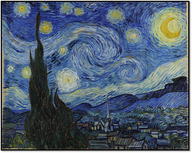 The sense that there are many coexistent contexts possible in time and space, each measured by any number of dimensions, certainly helps us to see Van Gogh’s paintings differently, perhaps even each time we see them. So inadequate are our own three dimensions, Kiefer sometimes evokes the learning imagined in magical systems such as religions, folklore, and even alchemy – not unlike Carl Jung in that respect. For instance when speaking of Starry Night (1889) he the stuff of Romantic fable and poetry to invoke what Friedrich Hölderlin calls the ‘silence of the shadow world’.