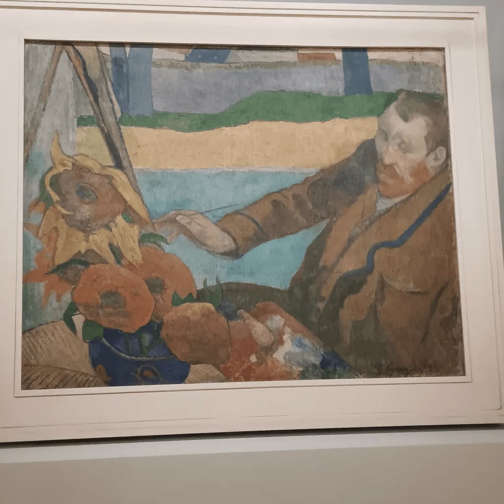 Sunflowers are an icon of the eye of man and God, of the antagonism of life to death and the nuance in that antagonism, and Van Gog’s sunflowers are read too simply – which is surely what Gauguin intended to show in his portrait of Van Gogh in the act of painting sunflowers, whilst the latter look away from the artist, almost pleading with the viewer not to do this act of interpretive simplification unintended by Van Gogh: