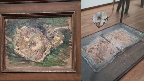 I don’t want to examine my own feelings about this artwork which I find exceedingly moving. I have tried reading the texts on that sunflower motif only top find a plethora of contexts other than merely Van Gogh that create its repertoire of meanings. I instanced one I saw in a seventeenth-century vanitas still life that I saw in the Rijksmuseum (see the blog at this link).