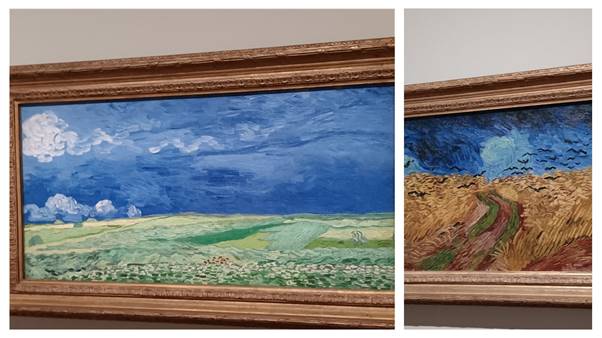 Van Gogh’s paintings have been hung opposite a wall of golden, encrusted, gargantuan Kiefers. Do the big 21st-century works overwhelm the poor little 19th-century ones? No. You are drawn magnetically to Vincent’s. The Van Gogh Museum doesn’t like it if you say Wheatfield with Crows is his “last” work (it’s just one of his last!) or read too much into the deathly birds streaking out of a billowing sky. But Van Gogh stood here, saw this, in this mood, and expressed his response in colours wrenched from within.