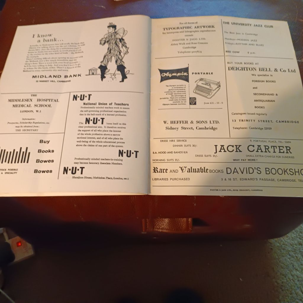 This is the world assumed by all the advertisers who kept Granta going, a world of worldly and income hungry punters who under their campery and pretension, have a cool head for business. My favourite advert for Midland Bank has Oberon, the King of Fairies, and a fairy still, realising that ‘a bank of wild thyme’ that sustains him in ‘a midsummer night’s dream’ is less useful than the solid and dependable bank that was the Midland – though even that bank too now has flown in the wind with the thyme / time, long absorbed by global capital under the title HSBC.