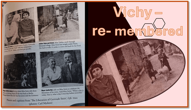 It was Bernard Faÿ that persuaded the Nazis to delay deportation of Stein and Toklas (which would have ended in concentration camps) and to not (at least yet) sequestrate the valuable art they owned. But he did so by virtue of collaboration and had promoted Stein’s project to translate the speeches of Pétain into English for an American audience. Most feel that the accusation of attraction to Fascism ill-founded and her collaboration treated with too little nuance – though the same accusations pursued, with more justice, President Mitterand at the time. The collage below shows how, following the fall of Vichy and German defeat, Stein attributed her escape from Nazi persecution to the good faith of the village that took Stein and her wife to its heart – whilst fully aware that they were both lesbian and Jewish.Yet I remember all this causing distance from Stein’s work for me.